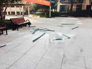 事发单元楼下,七七八八洒落了一地的玻璃碎片和窗户框,皆因爆炸产生的冲击波。