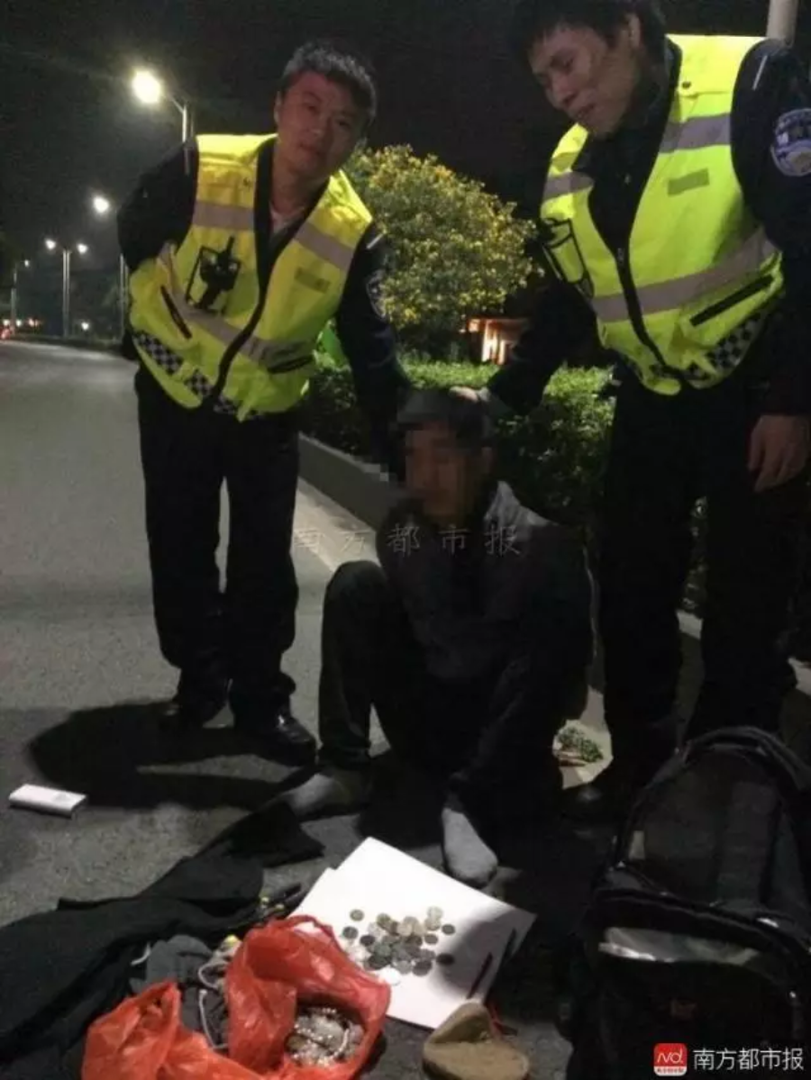 警方立即展开侦查,两小时后, 民警发现一名形迹可疑的背包男。正准备上前盘查,男子竟转身逃跑,结果被民警摁倒在地。