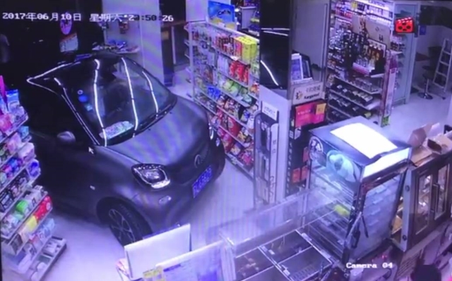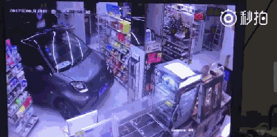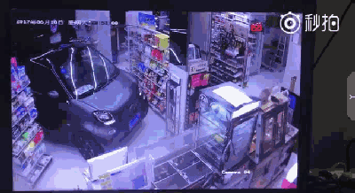 小轿车直接开进便利店