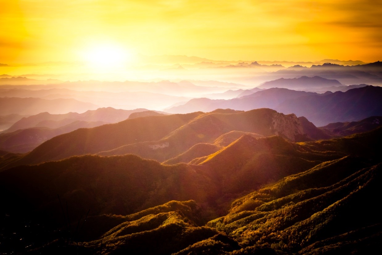 拍摄山岳是以自然光为光源,而日光会随时间的改变而发生角度的变化,色彩也随之改变, 早晚的山岳风景比白天的更具风情。特别是秋季寒冷的早晨,经常会出现非常有动感的云海,利用云雾可以改善山景的空间感和透视感。
