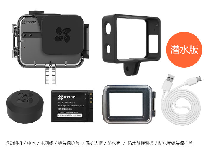 萤石运动相机贴心的为用户搭配了潜水版套装,其中包含了可以水下触屏的防水壳,配合运动相机2英寸的背屏让你再水下也可以轻松取景构图。除了防水壳,头戴、胸带、自拍杆也能为你提供不同方位的视角,方便你随时随地的来一张惊艳的自拍。