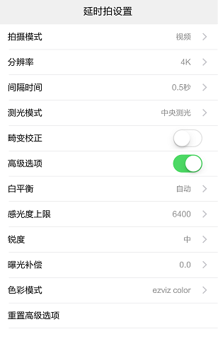 1.萤石运动App与运动相机wifi连接,进入延时摄影模式。