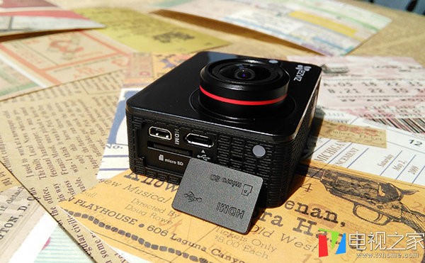 机身左侧是接口区,包括micro SD、mini HDMI和mini USB口,并有防尘盖,防止接口机会的同时保证了机身的整洁。萤石S5 Plus可外接扩展卡,最高支持128GB。左上角也有操作指示灯,拍照时会闪烁。