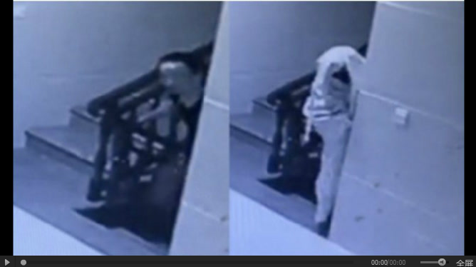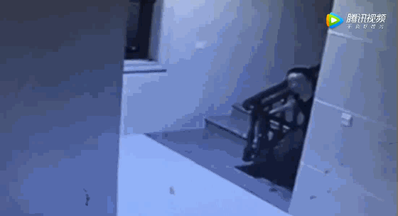 当日凌晨,对准一楼通道的监控探头突然被一把白色的扫帚捅了一下,镜头被顶歪后,只能照见二楼的弧形玻璃窗。