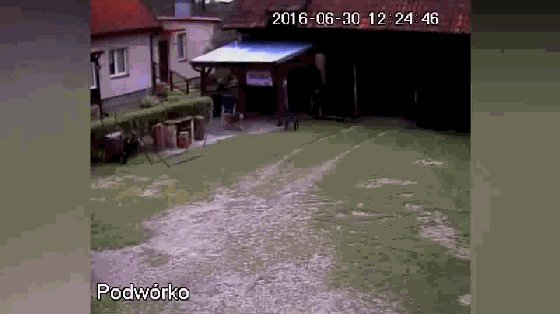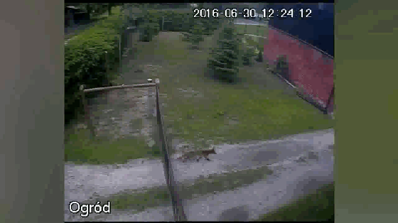 这次监控录下的视频是一位有养鸡的农场主。这天农场里来了一位不速之客-狐狸。别看这只狐狸吨位不怎么样,但速度一流,而且很快发现了养鸡的位置,正当这只狐狸蹲在养鸡基地准备进入之时,一只大狗以70迈的速度出现在农场中。这只狐狸完全不是大狗的对手,吓得屁滚尿流,赶紧逃出农场大门,落慌而逃。