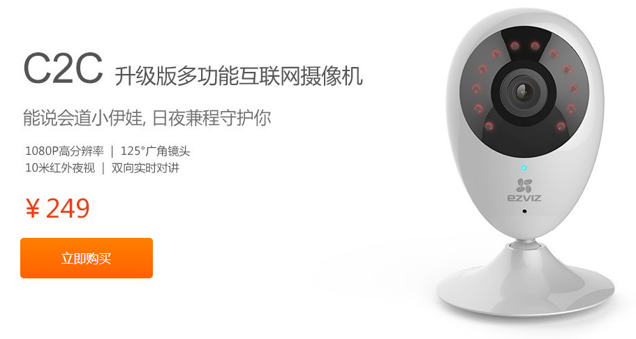 C2C摄像机1080p升级版,画质高清;还有环绕式红外灯设计,夜视距离10米,哪怕零光源也能得到清晰画质,夜视功能非常强大!配备125°广角,轻松覆盖空间每一个角落。