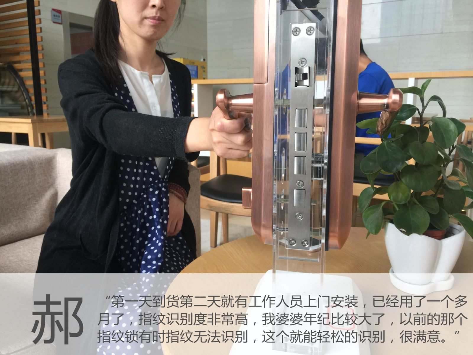 她表示:在看到双快锁体,防止内部反锁的意外事件发生的时候,就决心买下,因为家里的小孩即将步入最调皮的年纪,怕他到时候太过顽皮将门反锁,有此功能也是一种安全的保障。