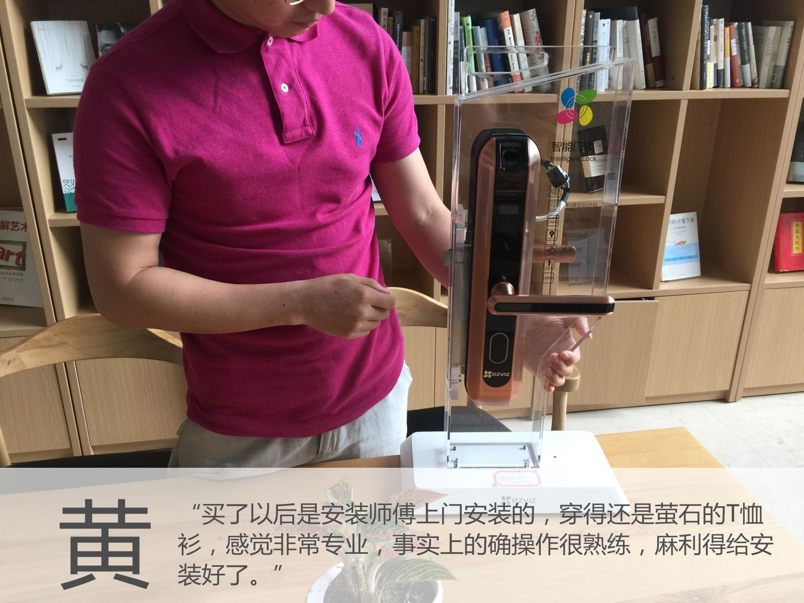 用户小结:总的来说,黄先生表示,之前也使用了多款萤石的产品,对萤石的质量非常相信。新推出的DL2网版指纹锁的指纹识别很灵敏,锁的质感也很好。且上门安装的工作人员,态度很好,操作也非常专业,更让他相信萤石一定会越做越好。他也祝愿萤石可以继续致力于打造智能安全生活,给用户实打实的安全感和便利性。