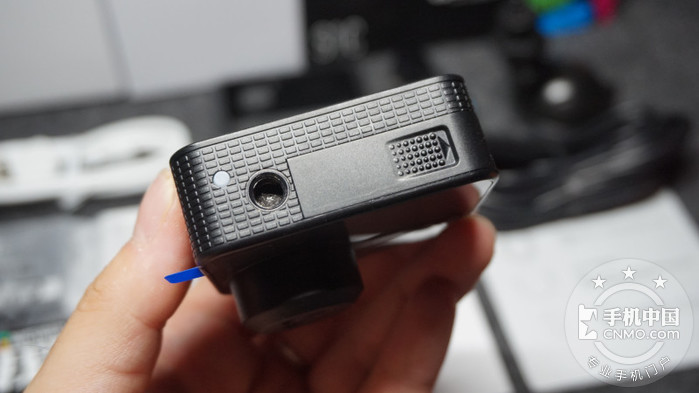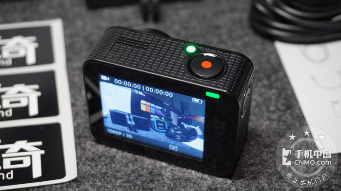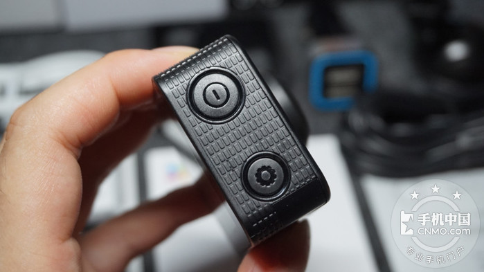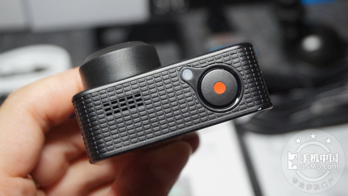 顶部则是一枚硕大的快门,兼具了一键拍照和一键录像的功能,旁边则是指示灯,工作时发绿色光,比较耀眼。
