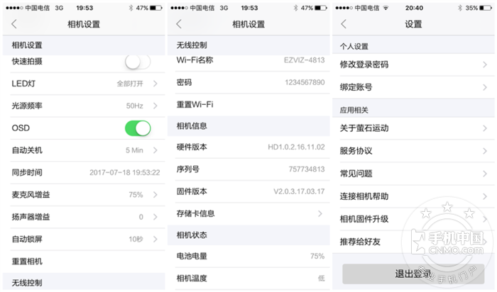 各种功能设置,说实话,在手机上操作比在2寸屏幕上操作方便多了,这其中我觉得比较有用的功能就是畸变校正了,140°广角镜头难免会存在镜头畸变,这个功能可以将画面进行校正,看起来更加舒服。