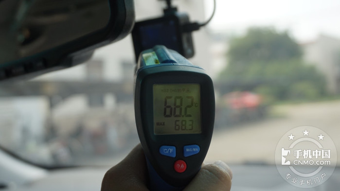 用一张图片来证明萤石准备两块电池的用意,拍摄时间中午1点,环境温度40摄氏度,用温度计测量车内暴晒了一个上午的S1C,温度达到了68度,这还只是表面温度,内部电池和各种元器件的温度想必更高,也从一个侧面证明了S1C的品质能经受住高温的考验。