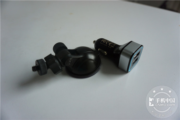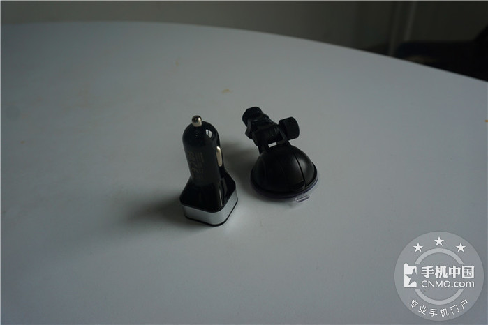 另外配备了两个配件:车载充电器和吸盘式相机底座