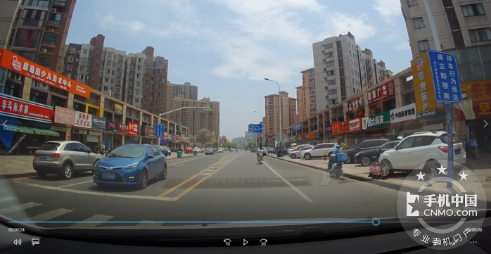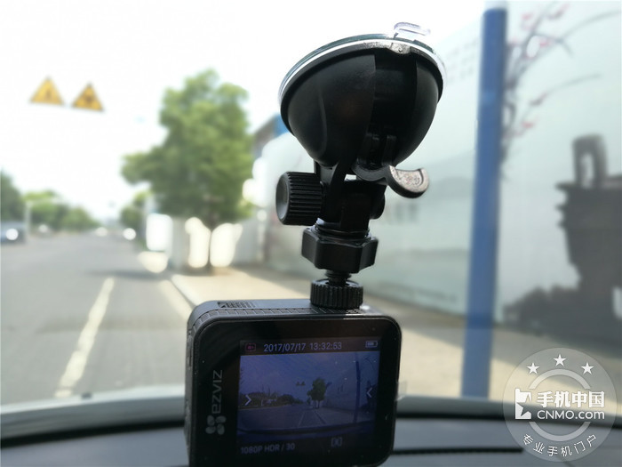 用赠送的吸盘支架,将运动相机固定在大前挡上,链接好长的那根电源线。并在设置中开启行车模式,瞬间运动相机开启了新模式,默认是每分钟保存一次,固件升级后可以设置3分钟保存一次。