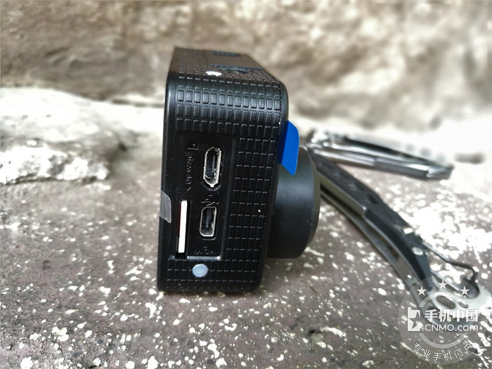 右侧是内存卡和MICRO HDMI输出和MICRO USB接口,让人郁闷的是就这么露着,好像有点对不起运动相机的称号。如果有个防尘盖应该是很不错的。