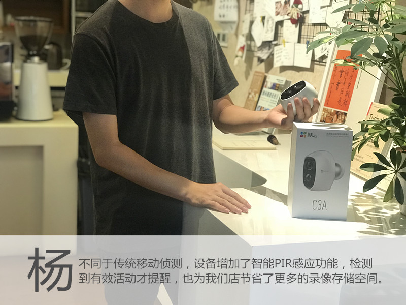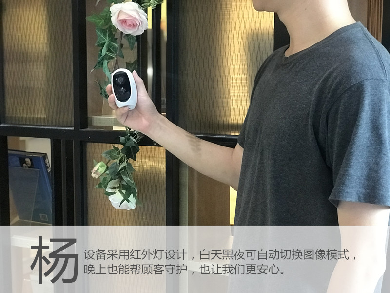 对于我们民宿来说,对设备的全无线和智能PIR功能还是比较看重的,为店里进行守护,夜晚也不用担心,要是能远程操作旋转,我们就更满意了。