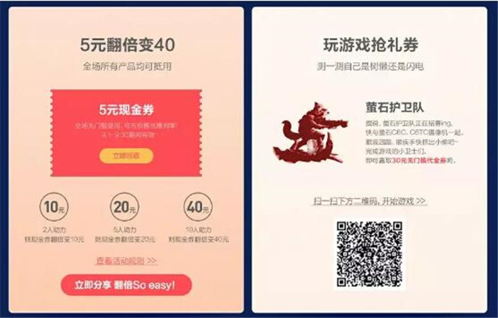 各位小伙伴们,快来拼手速!扫描页面二维码即可参与萤石护卫队小游戏,就有机会赢取萤石商城30元无门槛代金券,没有了使用条件的束缚,这个券想花哪里花哪里,so happy!