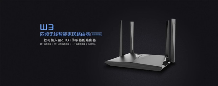 近日,萤石上市了首款四频无线智能家居路由器——W3,它不仅具备上网速度快、工作稳定、穿墙能力强、防蹭网等特点,最重要的是它还支持萤石全部智能家居传感器的接入,智能互联,远程控制