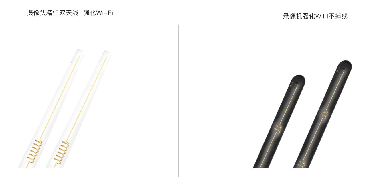 1、双天线设计,使得连网更加轻松,哪怕是隔墙,也不用担心连不上网,WiFi连接更是免去布网线,穿墙打孔的烦恼,完好的保持原有装修。对于那些有楼层的家庭或店铺来说,WiFi强化设计更能方便连接,监控画面更加稳定,第一时间得知异常动态。