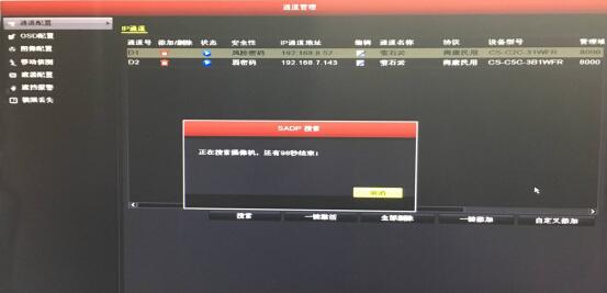 显示器进入到X5C“主菜单”——“通道管理”界面,点击“搜索”,之后会有120秒的时间给IPC配置X5C的无线信号;