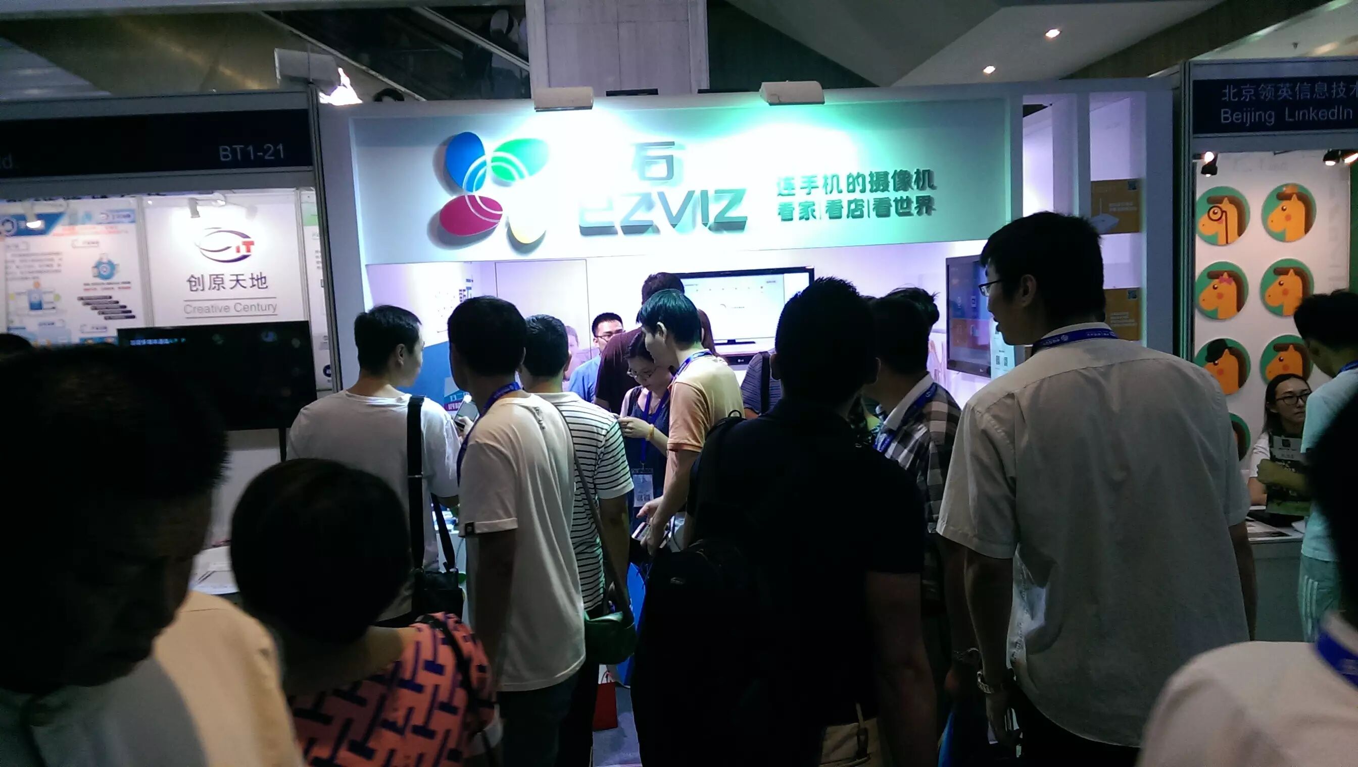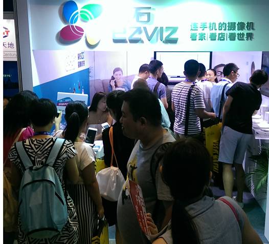 快看,萤石展位站满了人,哗啦啦的人哦……