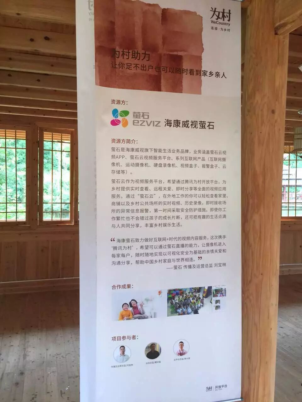 海康威视萤石作为重要合作伙伴、“为村”开放平台入驻资源方出席会议。萤石传播运营总监刘宝林在以乡村互联网化为主题的高端对话中表示:“海康萤石致力做好互联网+时代的视频内容服务,这次携手‘腾讯为村’,希望可以通过萤石直播的能力,让摄像机进入每家每户,随时随地实现以可视化安全为基础的亲情关爱和沟通分享,帮助中国乡村家庭与世界相连。”