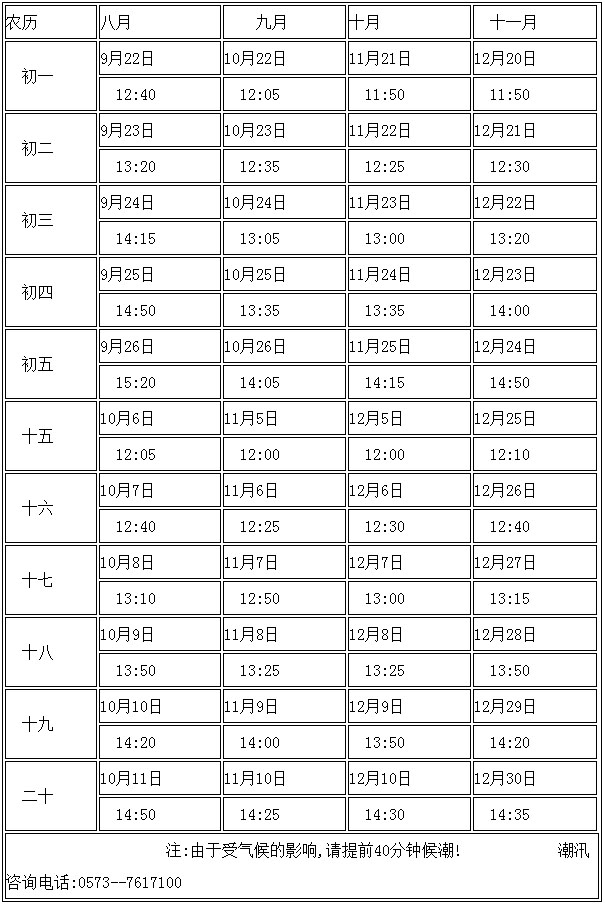 海宁全年观潮时间表: