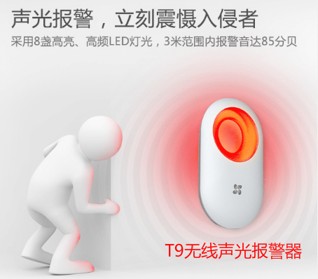 出门在外,萤石全系列智能硬件产品,通过视频与报警的联动,有效守卫家中店内安全。萤石智能摄像机可全天24小时提供视频保障,如有异常闯入直接推送消息到用户手机上,即便身在外地依然可以第一时间采取报警及对讲等措施,配合萤石 T9 无线声光报警器和其他传感传感设备,当萤石云接收到其他传感器的报警信号时,T9 会立刻发出高达85分贝的报警音,同时会像警车顶灯一样闪烁警示光,强烈震慑入侵者,如虎添翼,让闯入者望而却步,为家庭和店铺的安全提供多重保障。