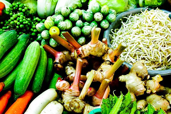 在一菜摊前看见两堆菜。