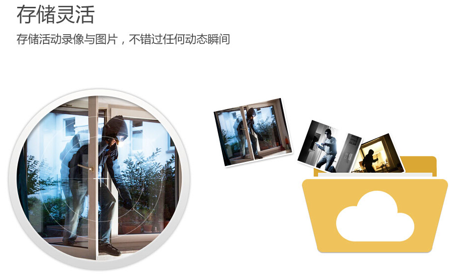 萤石云存储具备存储灵活、信息安全、读取方便等特点,配合萤石智能摄像机,简单又低成本地实现安全防范和取证。>>戳此了解云存储<< 不论小偷从哪里进来,都可以被萤石智能摄像机捕捉到,通过萤石云平台,及时将报警消息推送给用户手机,在手机上就能够对小偷行踪了如指掌。存储在云端的录像,在传输和存储过程中都严格加密,只有用户本人有权限查看,不必担心隐私问题。