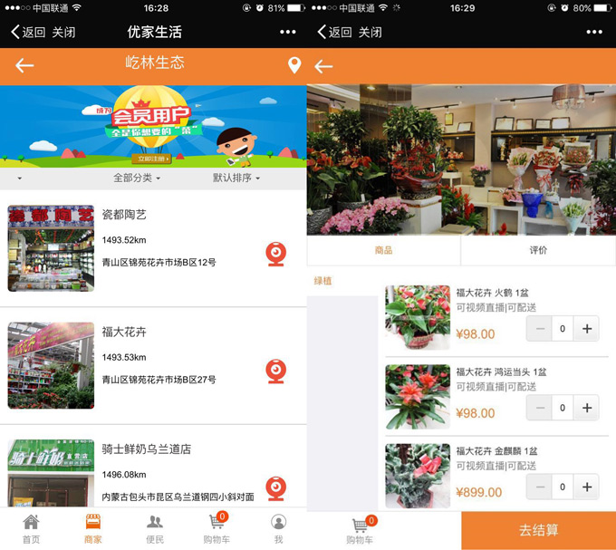 客人打开店铺微信号,点击查看店铺里的直播视频,不到店即可选择当日最新鲜蔬果花卉。