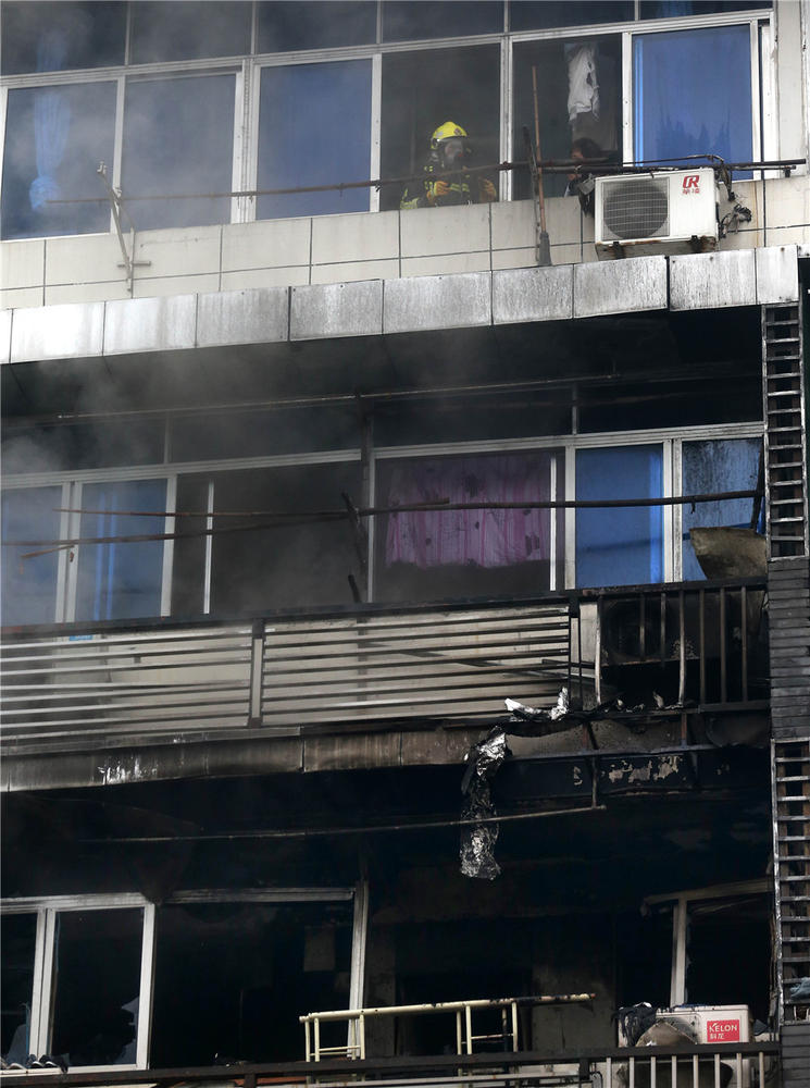 (杭州闹市居民楼大火 疑因电熨斗引发)