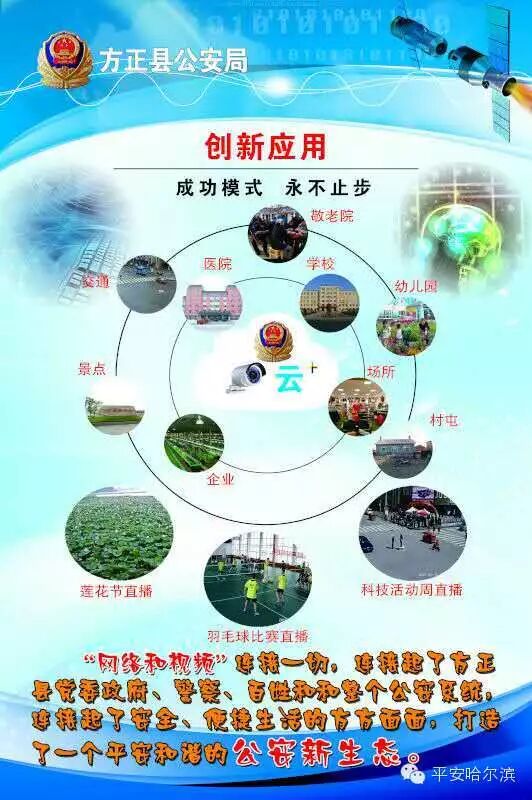 据介绍,方正县公安局紧紧抓住“互联网+”这个常态主体,在公安工作中大胆尝试,将互联网、云视频、物联网和公安信息化有机结合起来,通过创新开展视频技术进“家庭、小区、窗口”等服务模式,使辖区刑事案件明显下降,人民群众的满意度和安全感不断增强。互联网+云视频+公安+家庭,就是在居民家中安装网络摄像机,与互联网(wifi)无线连接,在智能手机上安装客户端软件,实现时时远程监看,视频图像采用云存储方式,便于事后查询。只要家里有人进入监控范围,手机就会自动报警并接收现场截图和提示信息,如发现是陌生人进入家中或出现异常现象,可立即拨打110报警。家庭多个成员还可同时看护多个家庭或者部位,根据自身需要,可拓展门磁、红外、烟感、幕帘、煤气报警、紧急呼救等多类探测报警装置,并可与网络摄像机进行联动应用,百姓不但能防盗,还能进行老人、儿童看护和店铺看护管理等,用途非常广泛,非常符合百姓居家安防需求和实际。互联网+云视频+公安+小区,就是通过在居民小区入口和院内及周边安装智能网络高清摄像机,解决了没有监控的居民小区视频监控盲点覆盖问题,省去了监控室和监控平台,只用网络高清摄像机、家庭链路和一部智能手机就实现了居民小区的全面“掌控”。民警可以通过手机实时监看和调取回放小区视频图像,更大程度地发挥了视频信息应用效能。互联网+云视频+公安+窗口,就是在交警大队车管所、出入境办证大厅、户政身份证办证大厅和交警处罚大厅窗口推出了为需要办事群众提供实时办公视频服务新举措,即在窗口服务大厅安装智能网络摄像机,将工作时间大厅内群众办事和窗口办公视频传输分享到窗口微信朋友圈,供有需求的群众利用微信实时查看,群众可以根据办事大厅人员情况自由选择办事时间,避免了排队办事的烦恼。