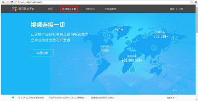 • 打开open.ys7.com,点击应用开发下载