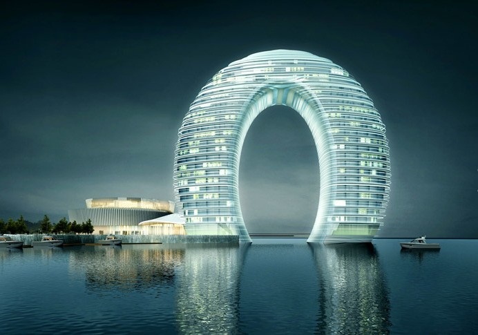 好吧,“马桶盖”是网友们的戏称啦,其实人家全称是“中国湖州喜来登温泉度假酒店”,可是国内首家水上白金七星级酒店!位于似海非海的太湖南岸,是中国湖州“世界第九湾”的标志性建筑。(好高大上的马桶盖……)
