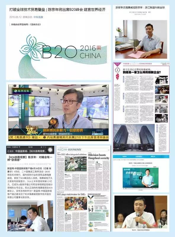 陈宗年基于海康威视自身发展经验,结合当前经济发展走势及世界经济一体化趋势,见微知著,提出自己对B20峰会的建言和提议,也引起了各大主流媒体的关注和共鸣, 中央电视台、新华社、中新社、《CHINA DAILY》、浙江卫视、杭州电视台、《浙江日报》、《杭州日报》、《钱江晚报》、《都市快报》、《经济日报》、网易、浙江在线、浙商杂志社等几十家知名媒体进行了深入报道。
