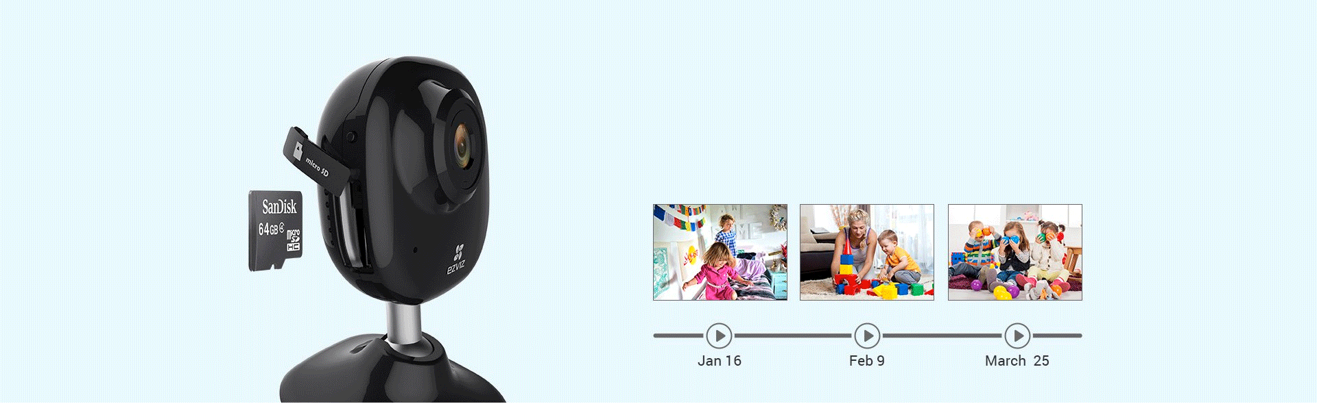 The Mini Plus comes with a built-in microSD slot so you can save videos and pictures directly to the camera. Once saved, you can share them with friends and family using the EZVIZ app on your smartphone or tablet.